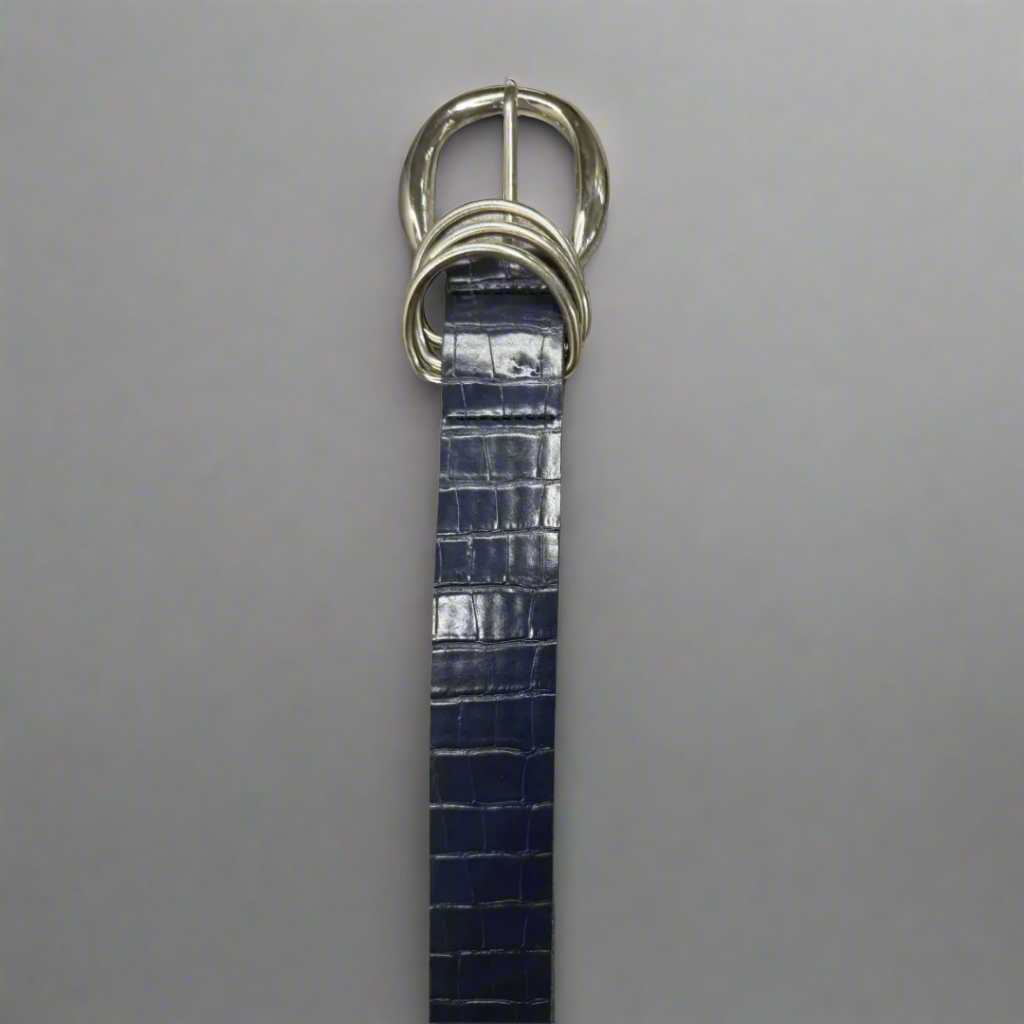 The Textured Statement Buckle Belt - Blue
